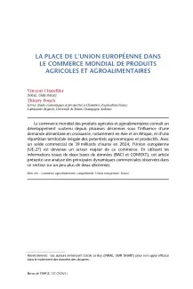 Le commerce mondial des produits agricoles et agroalimentaires connaît un développement soutenu depuis plusieurs décennies sous l’influence d’une demande alimentaire en croissance, notamment en Asie et en Afrique, et d’une répartition territoriale inégale des potentiels agronomiques et productifs. Avec un solde commercial de 39 milliards d’euros en 2024, l’Union européenne (UE-27) est devenue un acteur majeur de ce commerce. En utilisant les informations issues de deux bases de données (BACI et COMEXT), cet article